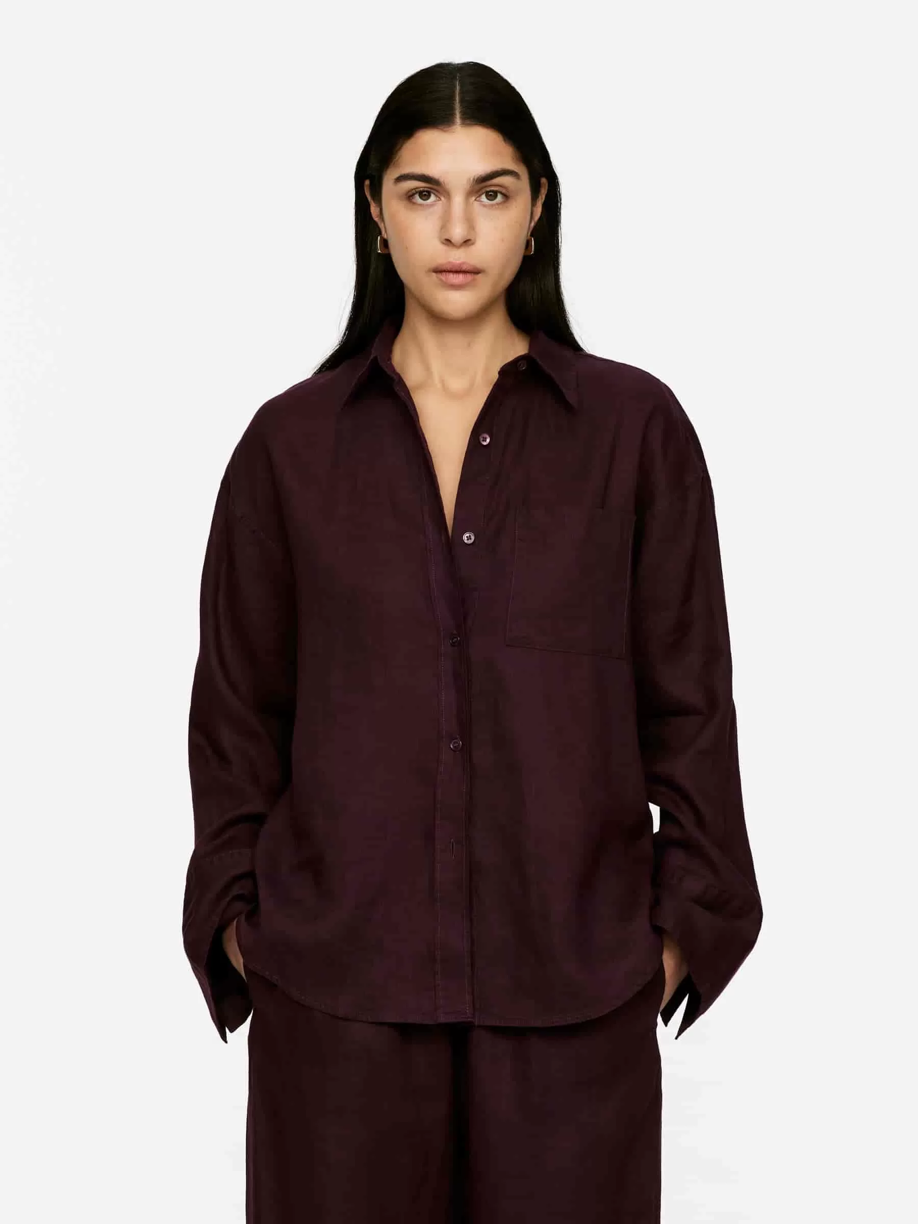 Løreskjorte med lidt bredere ærmer og en enkelt brystlomme. Normal pasform.