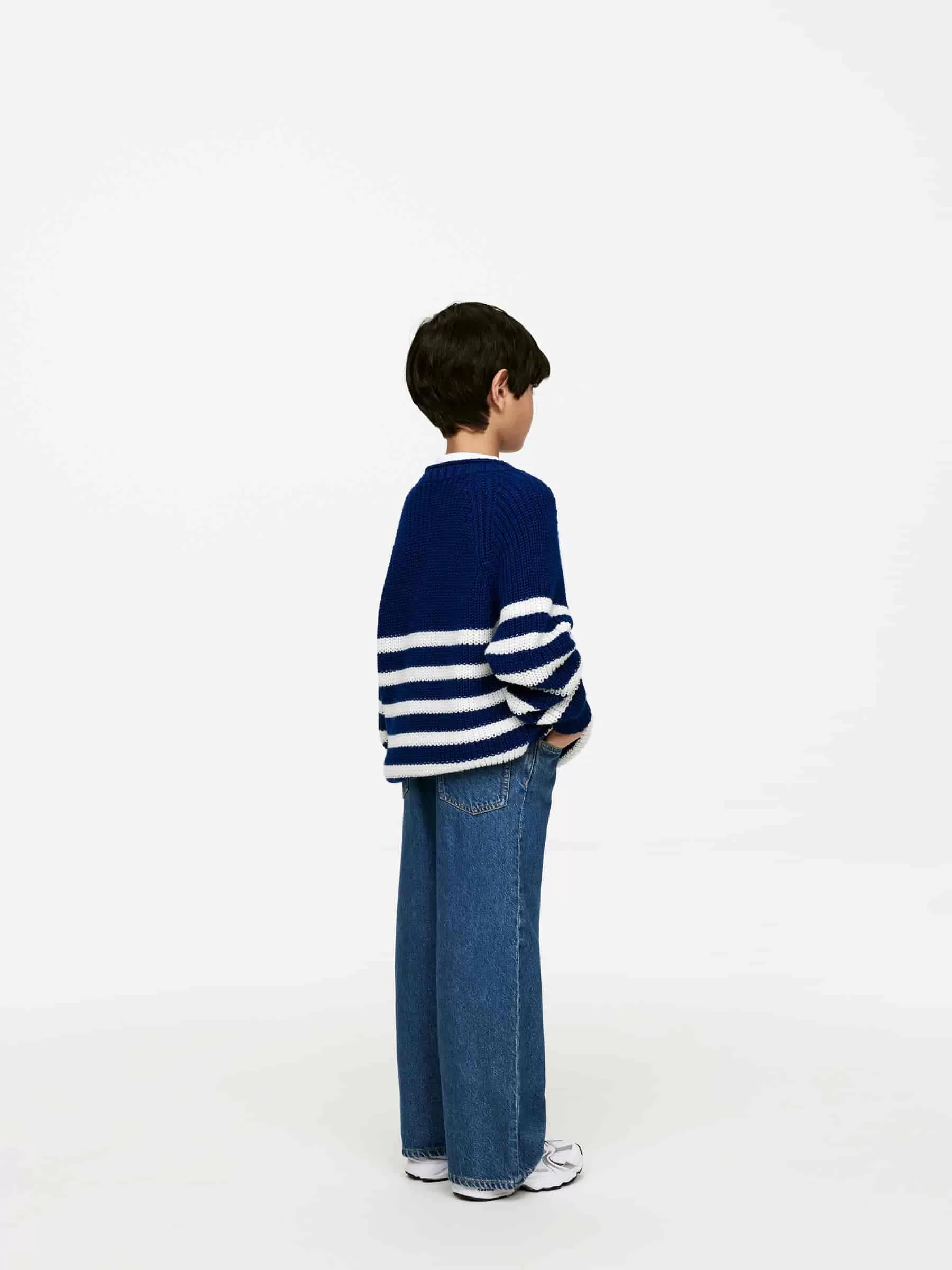 ARKE Børn Chunky-strikket trøje Blå/Hvid