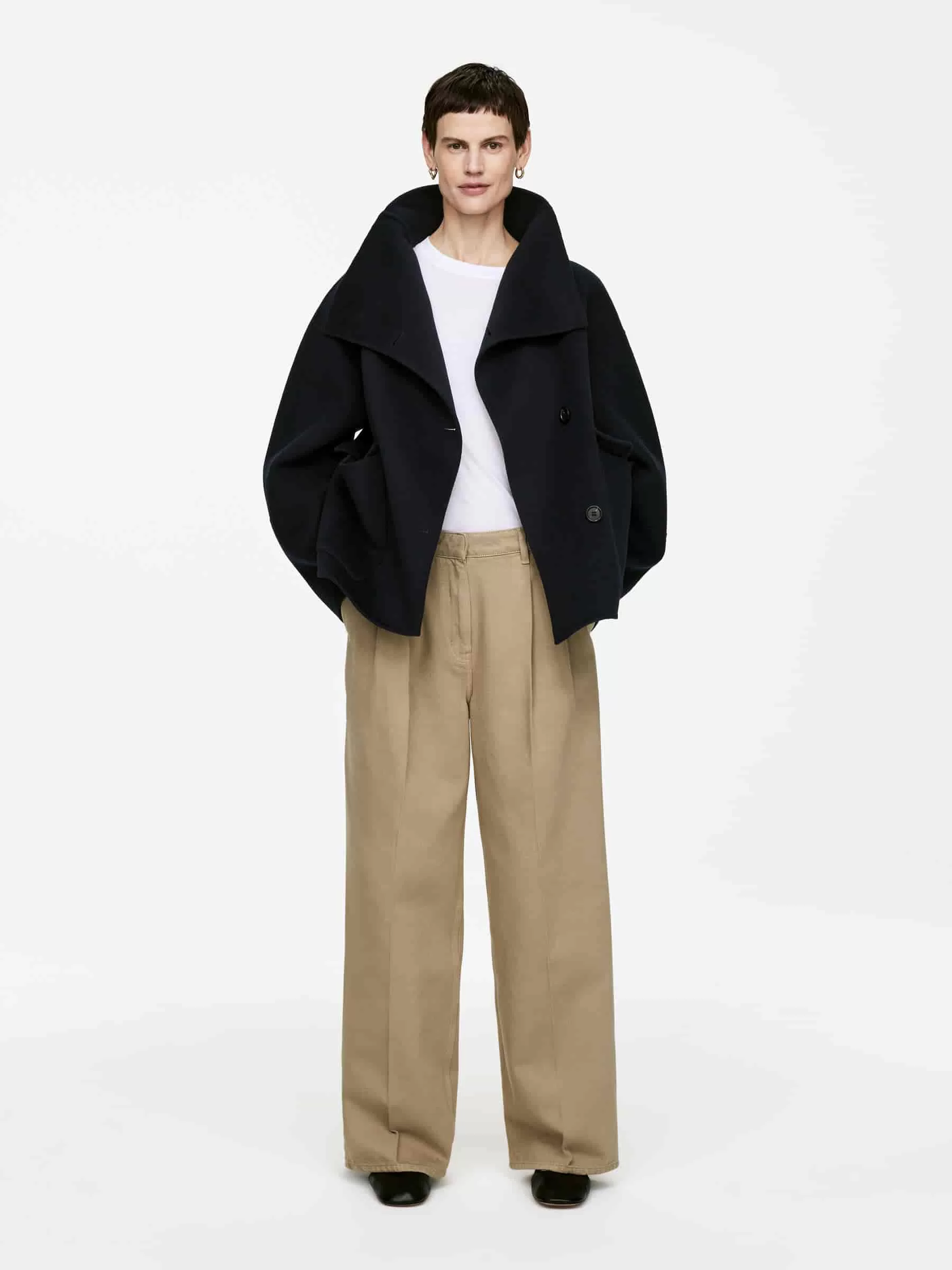 Denimbukser med brede ben lavet af et bomulds-lyocellstof med en vasket finish. En skræddersyet stil med trykfolder foran og bagpå. Krog-og-øje lukning, skrå sidelommer og paspolerede lommer bagpå.