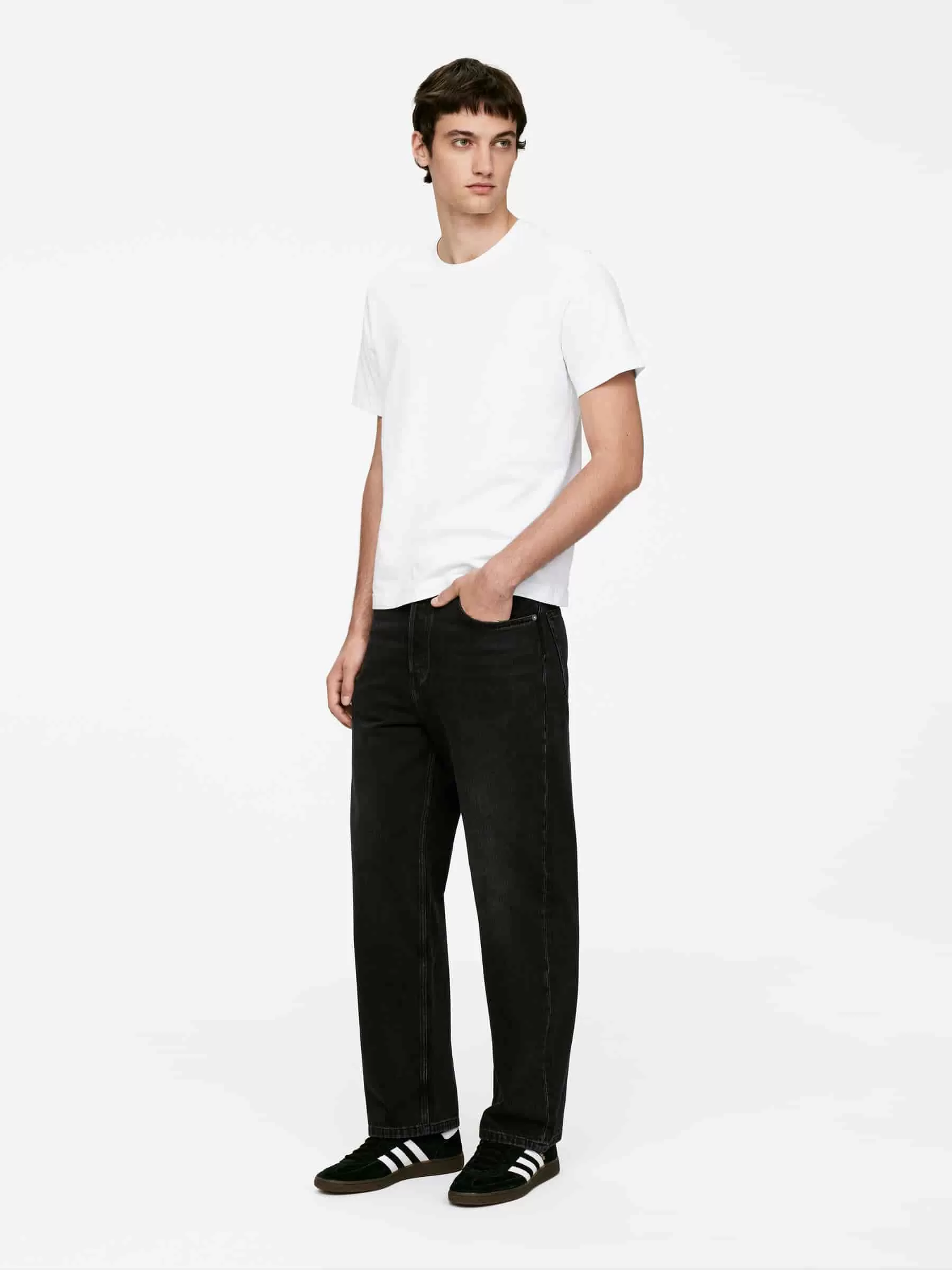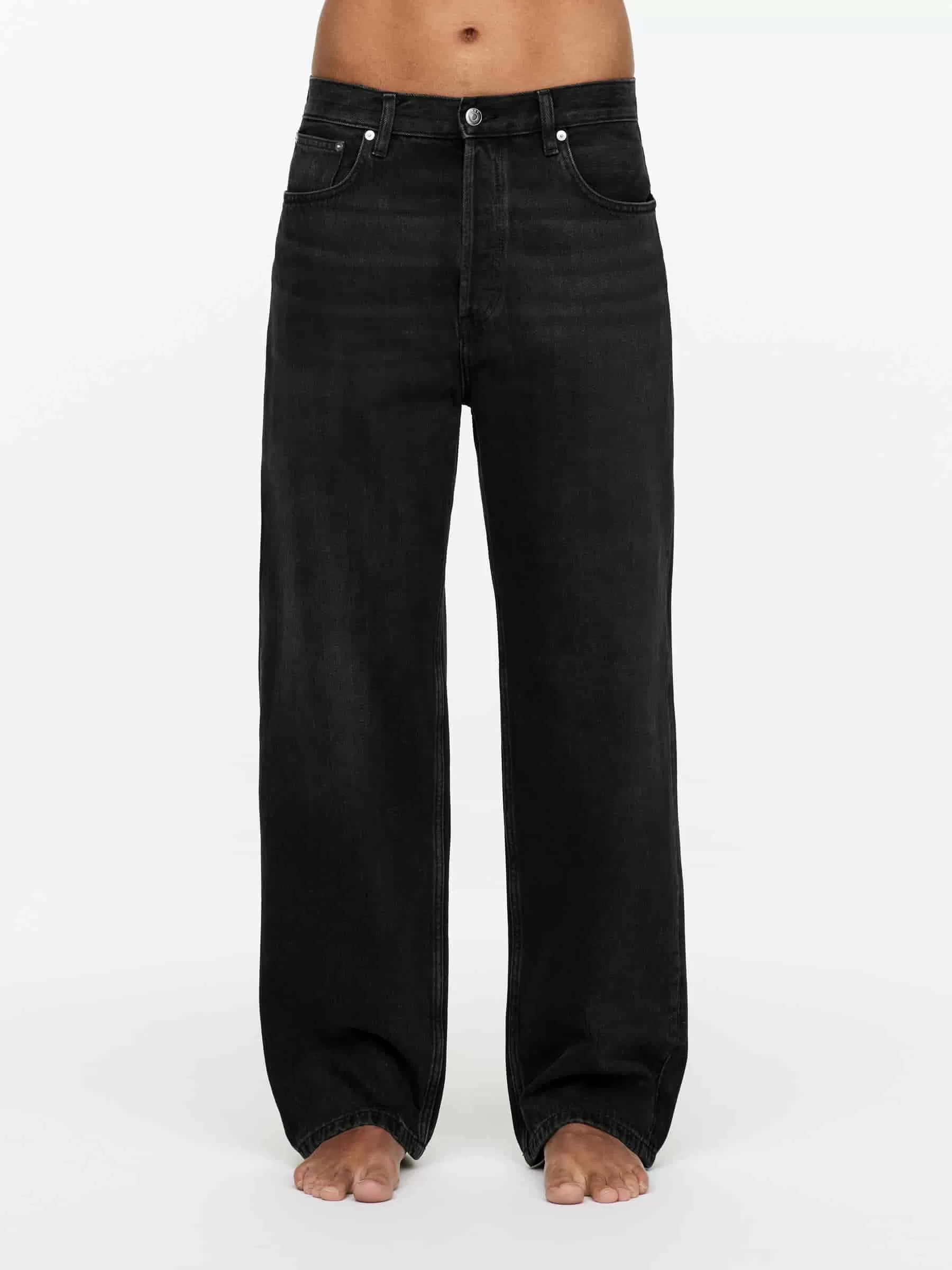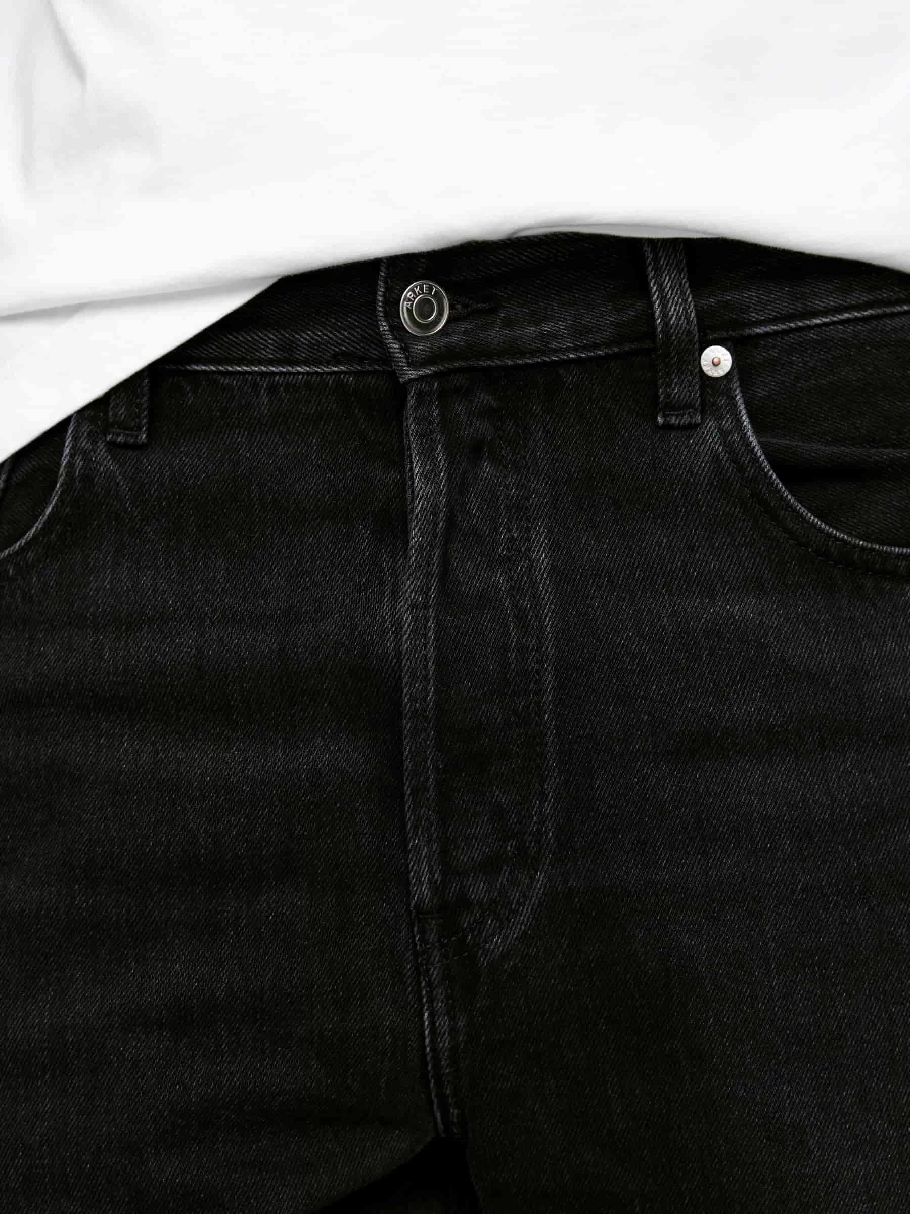 MIST er vores bredeste pasform, skåret i non-stretch bomuldsdenim. Den har et lavt skridt, en løs pasform, der giver mere plads omkring sædet, og brede ben i fuld længde. Knapflugt.