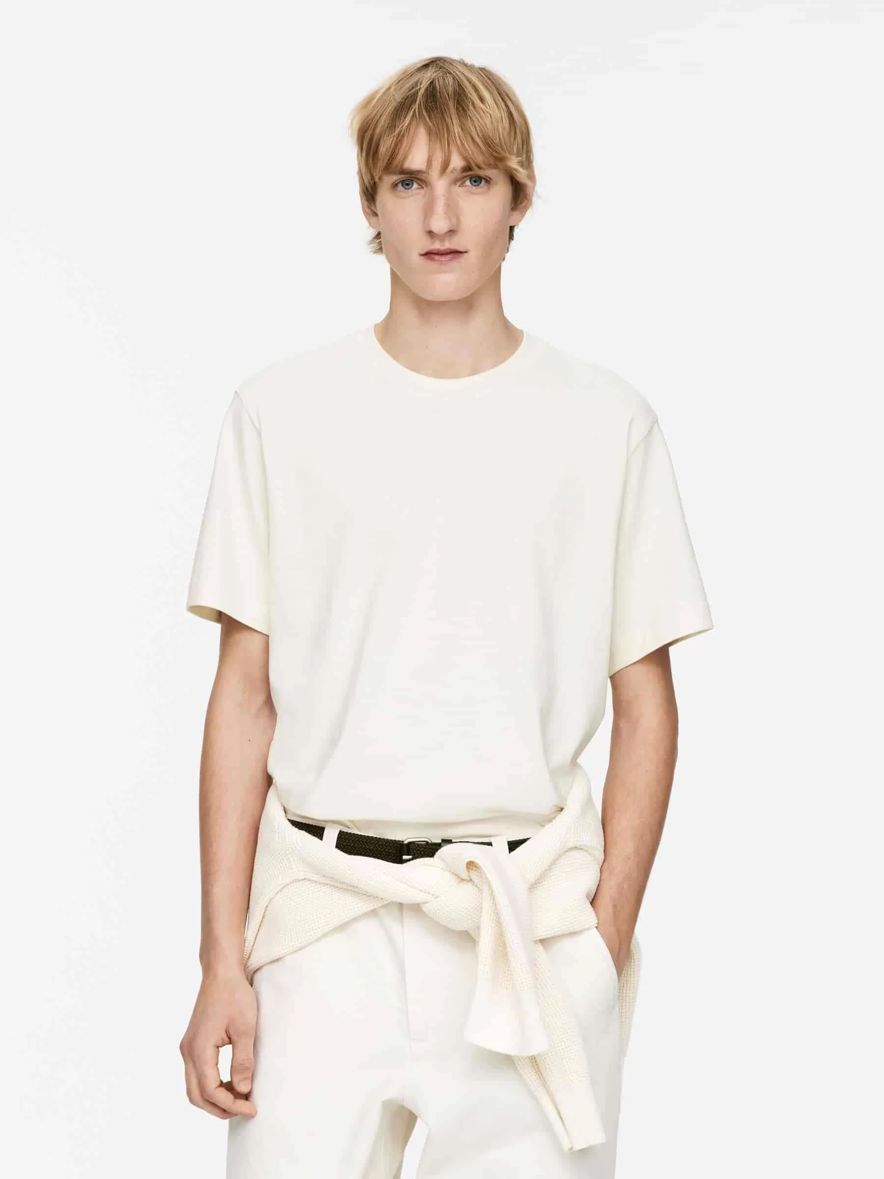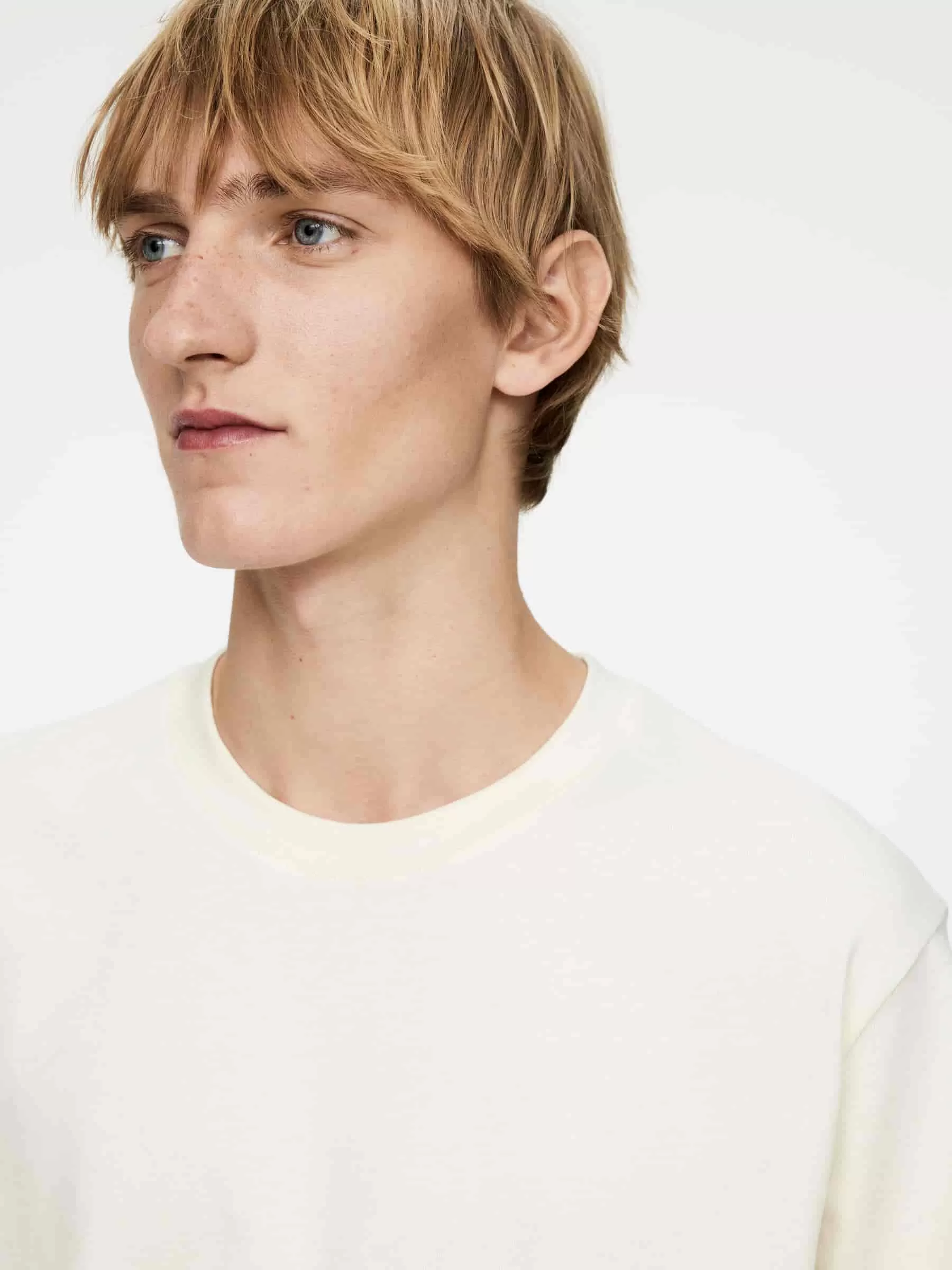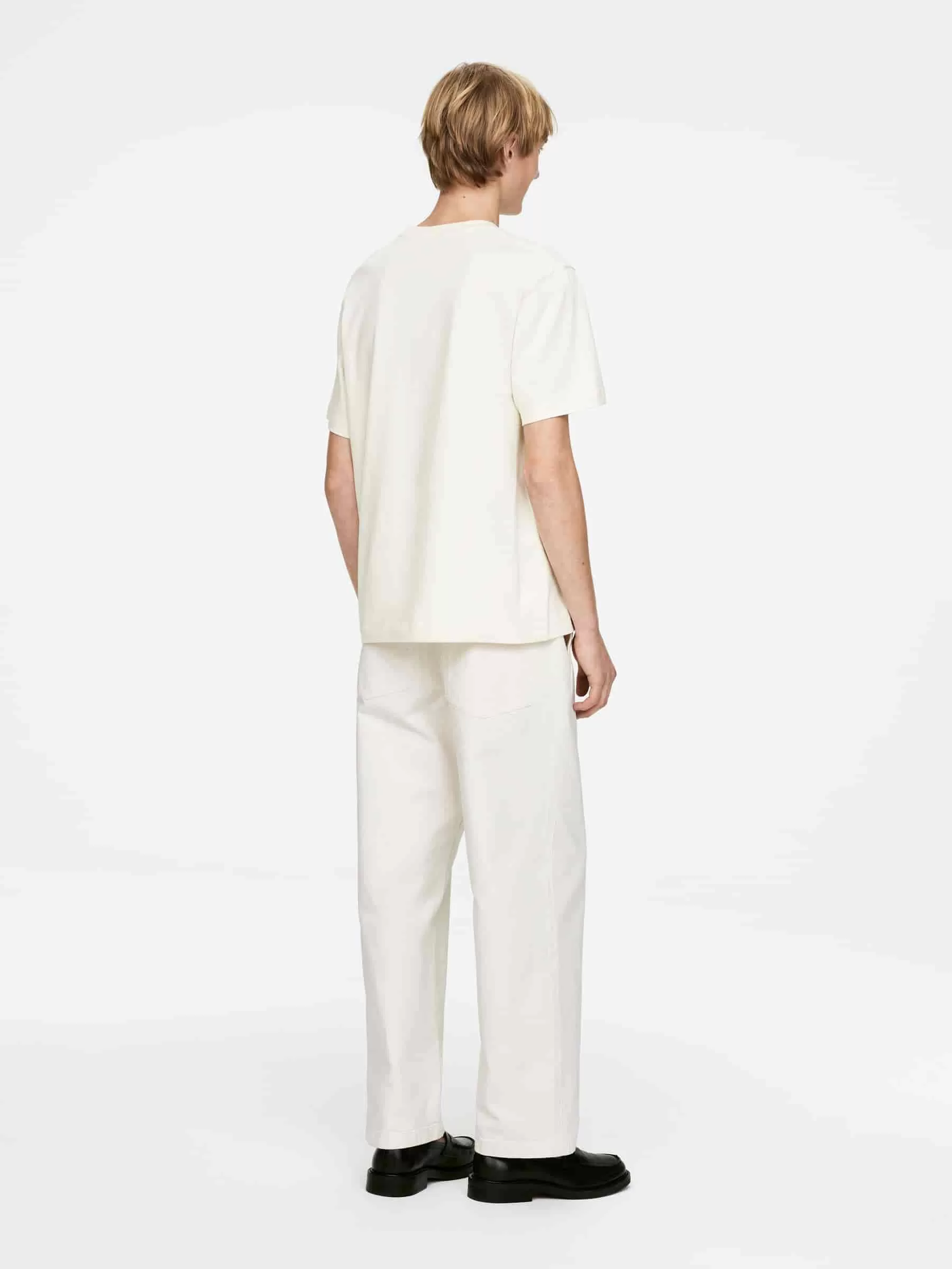 Klassisk T-shirt med rund halsudskæring til en normal pasform. Den er lavet af 220 GSM single jersey, hvilket indikerer, at dette er mellemvægtsversionen af ARKETs standard T-shirts.